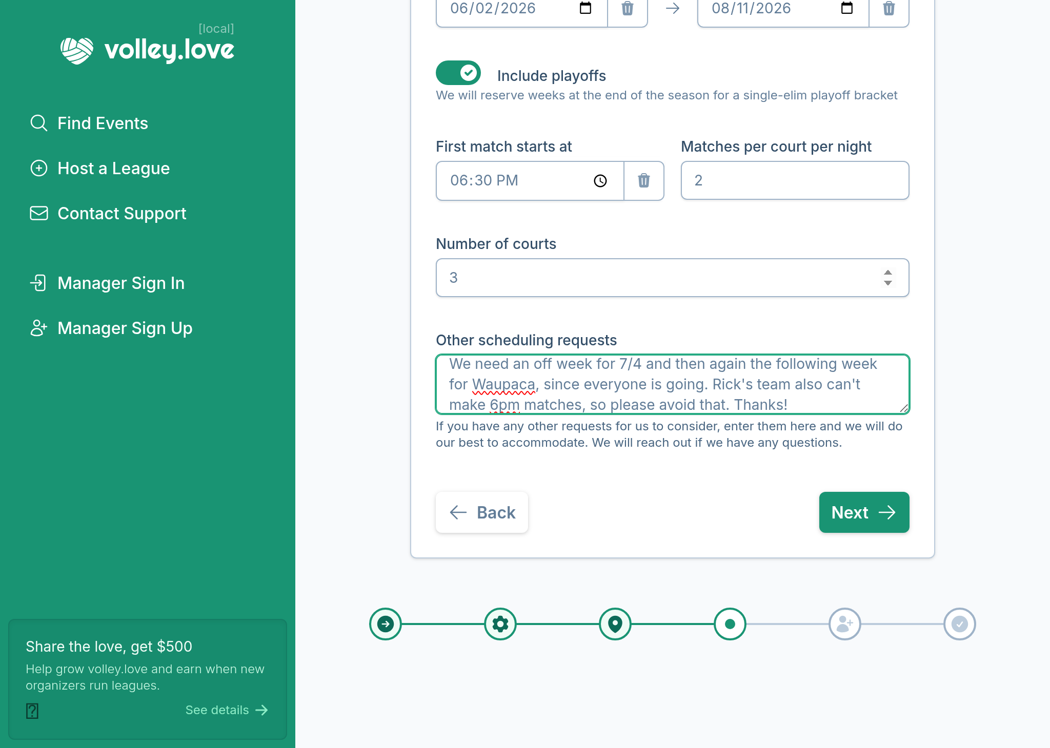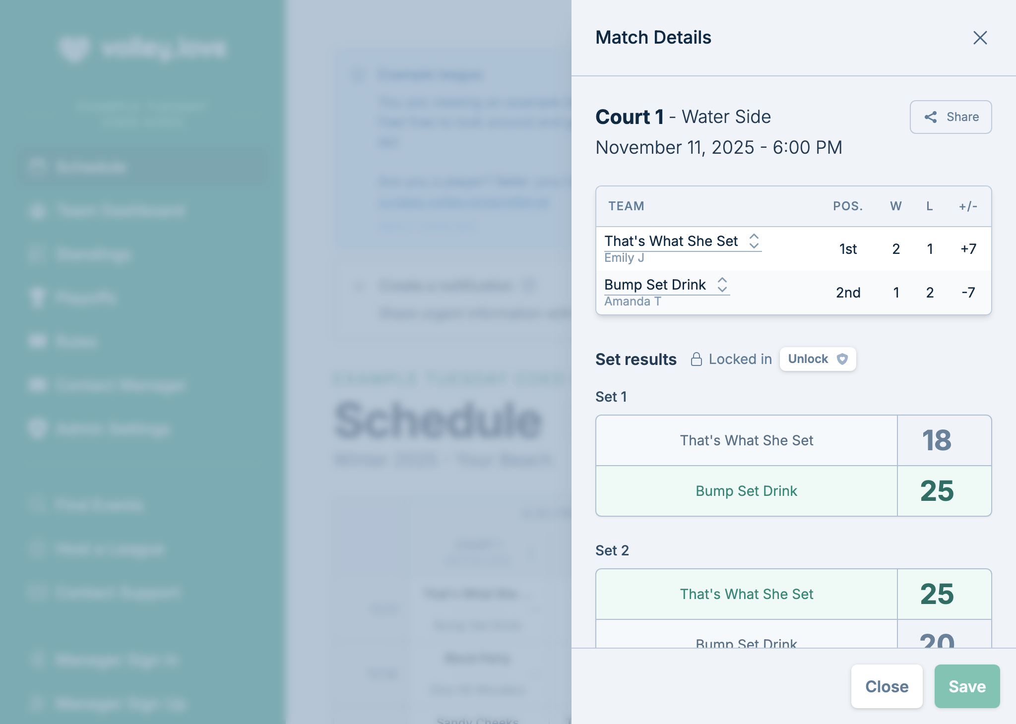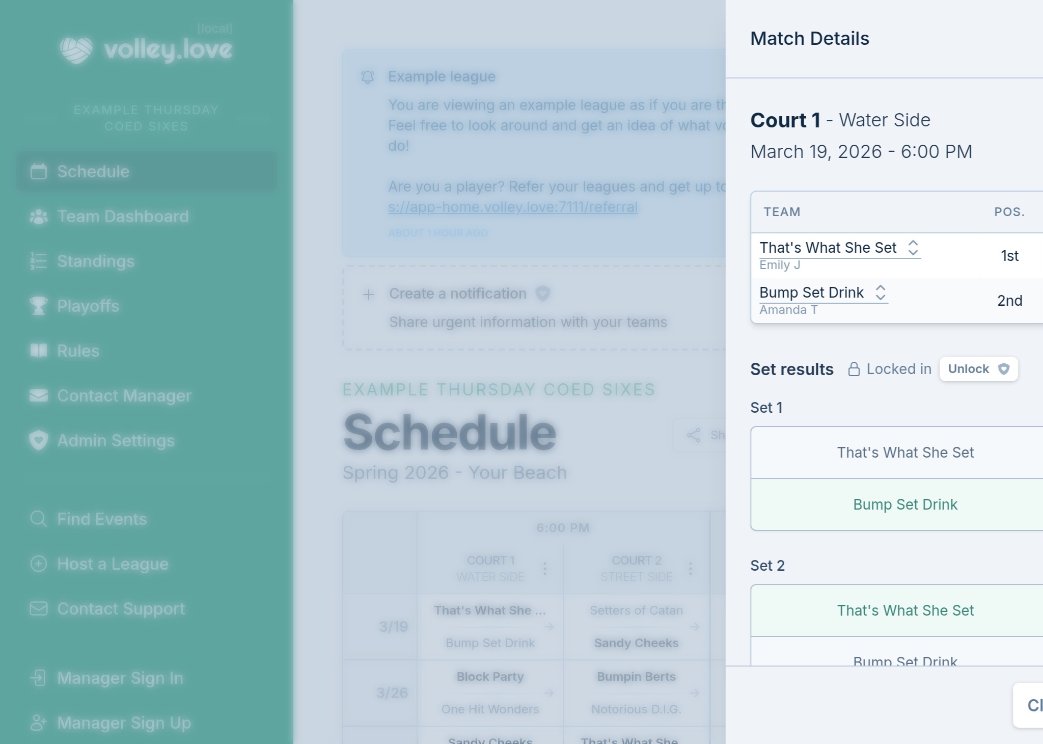 Bad weather? No problem. volley.love makes cancelling and rescheduling matches a breeze.